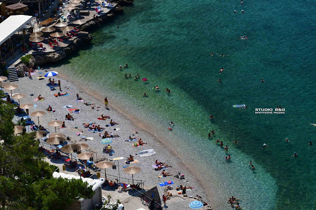 Μπάνια στην πλαζ της Αρβανιτιάς στο Ναύπλιο, Τετάρτη 14 Ιουλίου 2021.