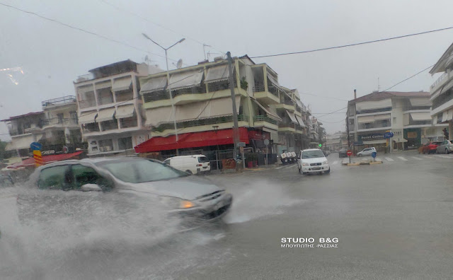 Πλημμυρισμένοι δρόμοι από την πρωινή καταιγίδα στο Ναύπλιο, Δευτέρα 26 Φεβρουαρίου 2024.