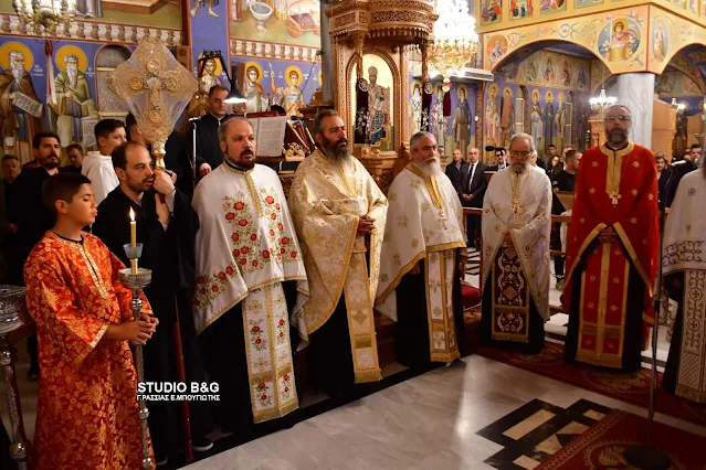 Την παραμονή της εορτής τελέστηκε εορταστικός εσπερινός ιερουργούντος του Γενικού Αρχιερατικού της Μητροπόλεως Αργολίδας π. Πέτρου Αθανασόπουλου καθώς και του Προέδρου των Ελλήνων Κληρικών (ΙΣΚΕ) Πρωτοπρεσβύτερου π. Γεώργιου Σελλή.