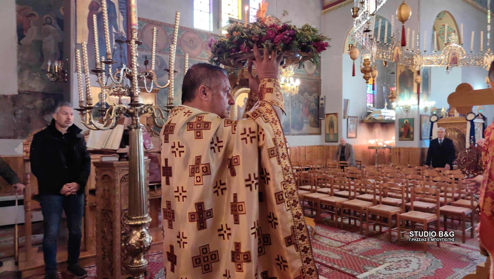 Ο Μητροπολίτης Αργολίδας κατά την θεία λειτουργία ευλόγησε τα σταυρολούλουδα , τα οποία συνηθίζεται να δίνονται ως ευλογία στους πιστούς.