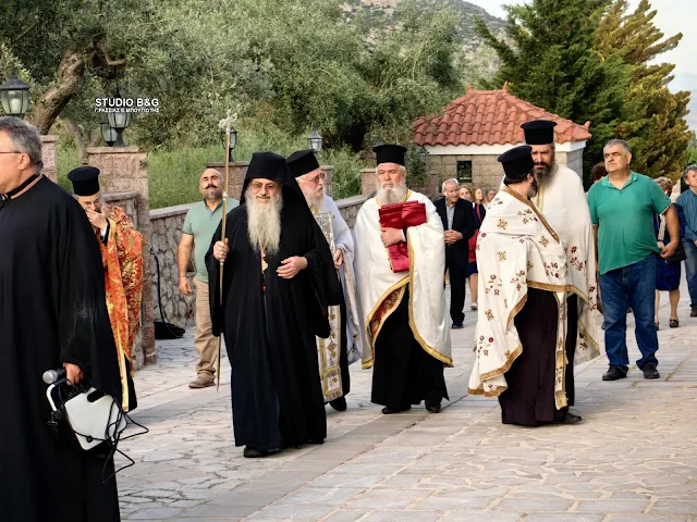 Προηγήθηκε η υποδοχή των Ιερών Λειψάνων και στη συνέχεια τελέσθηκε Μέγας πανηγυρικός εσπερινός εγκαινίων χοροστατούντος του Μητροπολίτη Αργολίδος Νεκταρίου.